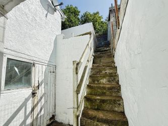 To the front of the property off-road parking is located for one vehicle, ensuring convenience for residents. To the rear, steps ascend to a tiered, low-maintenance garden with a patio area.