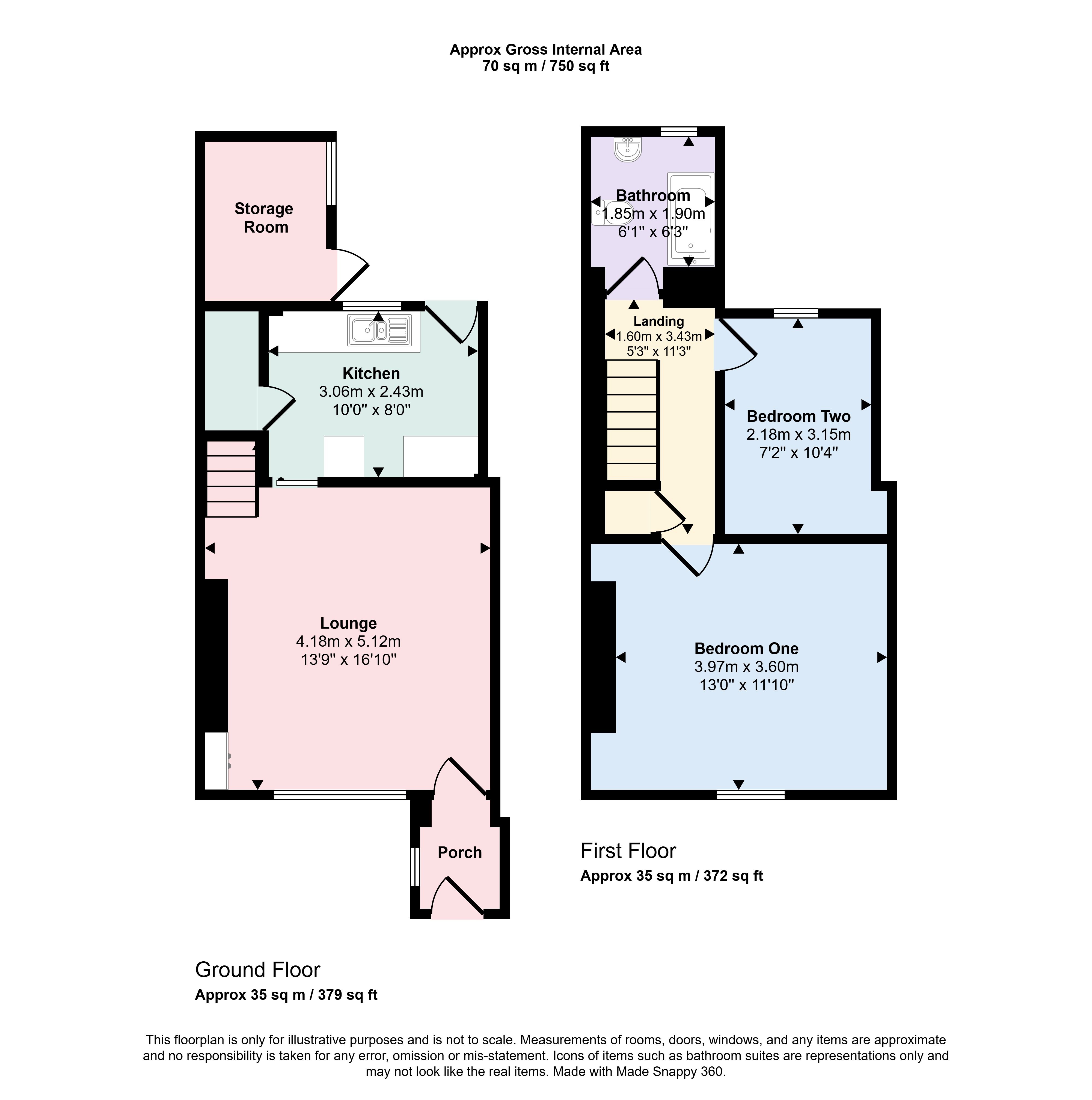 Upstairs, the property comprises two well-proportioned bedrooms, both offering comfortable accommodation with space for storage. Completing the first floor is a family bathroom, neatly presented and positioned for convenience.
